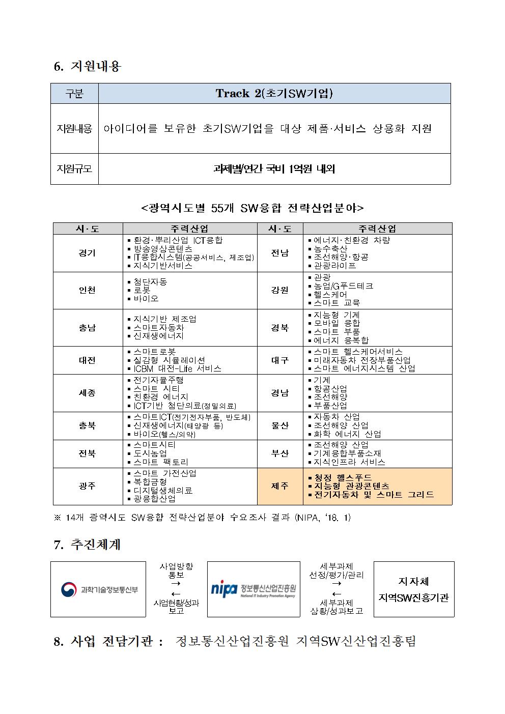 2018~19년 지역SW융합제품 상용화사업(제주) 공고문(재공고)