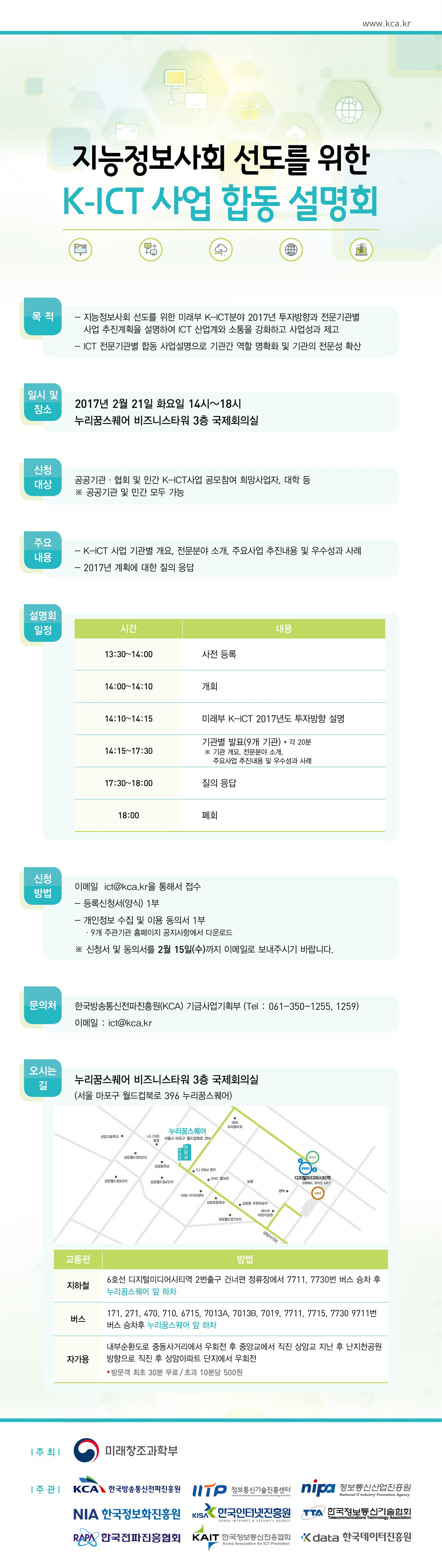 지능정보사회 선도를 위한‘K-ICT 사업 합동 설명회’ 안내