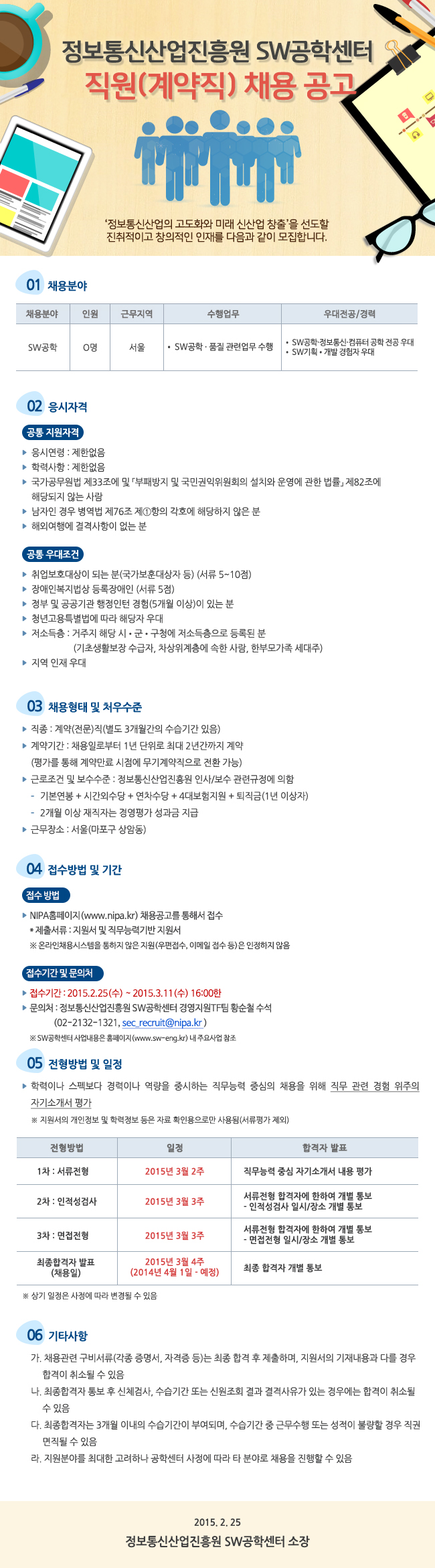 정보통신산업진흥원 부설 SW공학센터 직원(계약직) 채용 공고