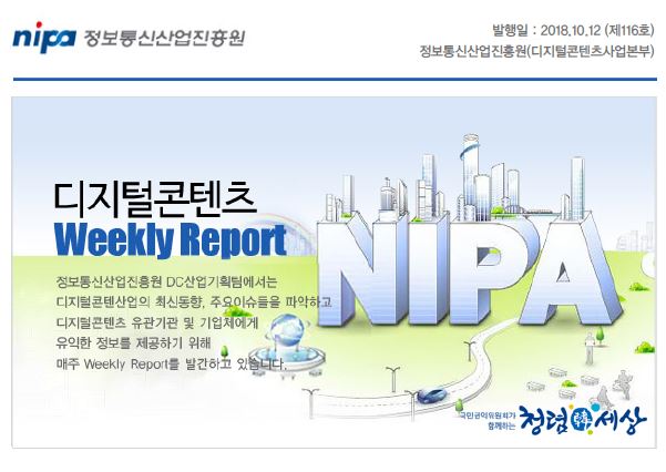 NIPA_디지털콘텐츠 Weekly report 제 116호_181012.pdf (파일크기: 406 KB )